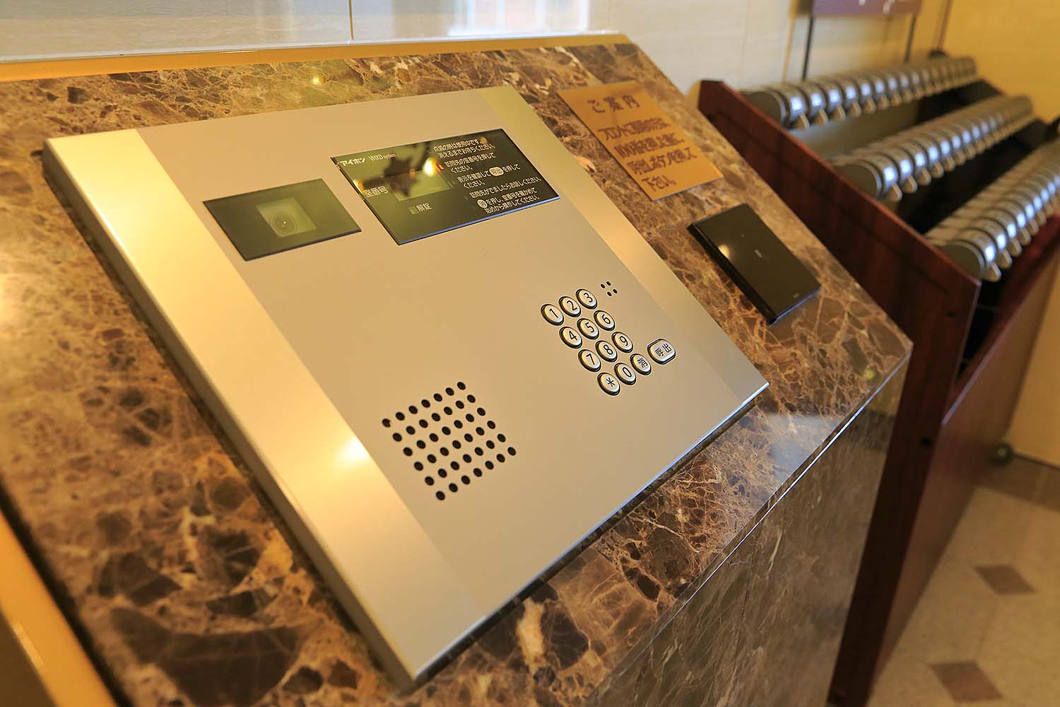 訪問者の入館確認はスタッフが行うので、不審者等侵入の心配がなく安心。